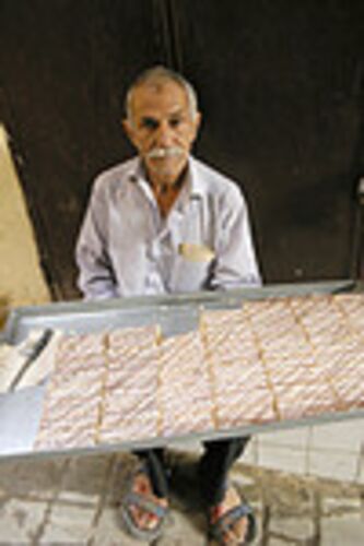 おじいさんがバケツを持って歩いていた。 お母さんが、野菜を持って歩いている。 ロバが荷物を山積みにして、引かれていく。 路地で、ケーキを売っているおじさんがいた。 地元のおばさんが、買っている。 覗いてみた。 綺麗なチョコケーキ。 一個もらえるか…